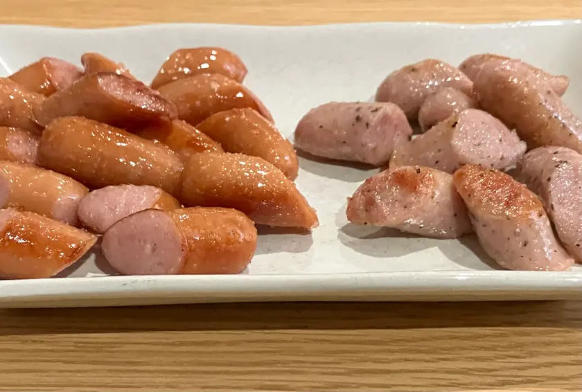 ↓↓↓半分に切って焼いてみた!ウインナーを炒め、火を止める直前にアジシオをパラっと振って、塩の結晶が見えるうちに食べる「塩ウインナー」が好きです。やってみて!