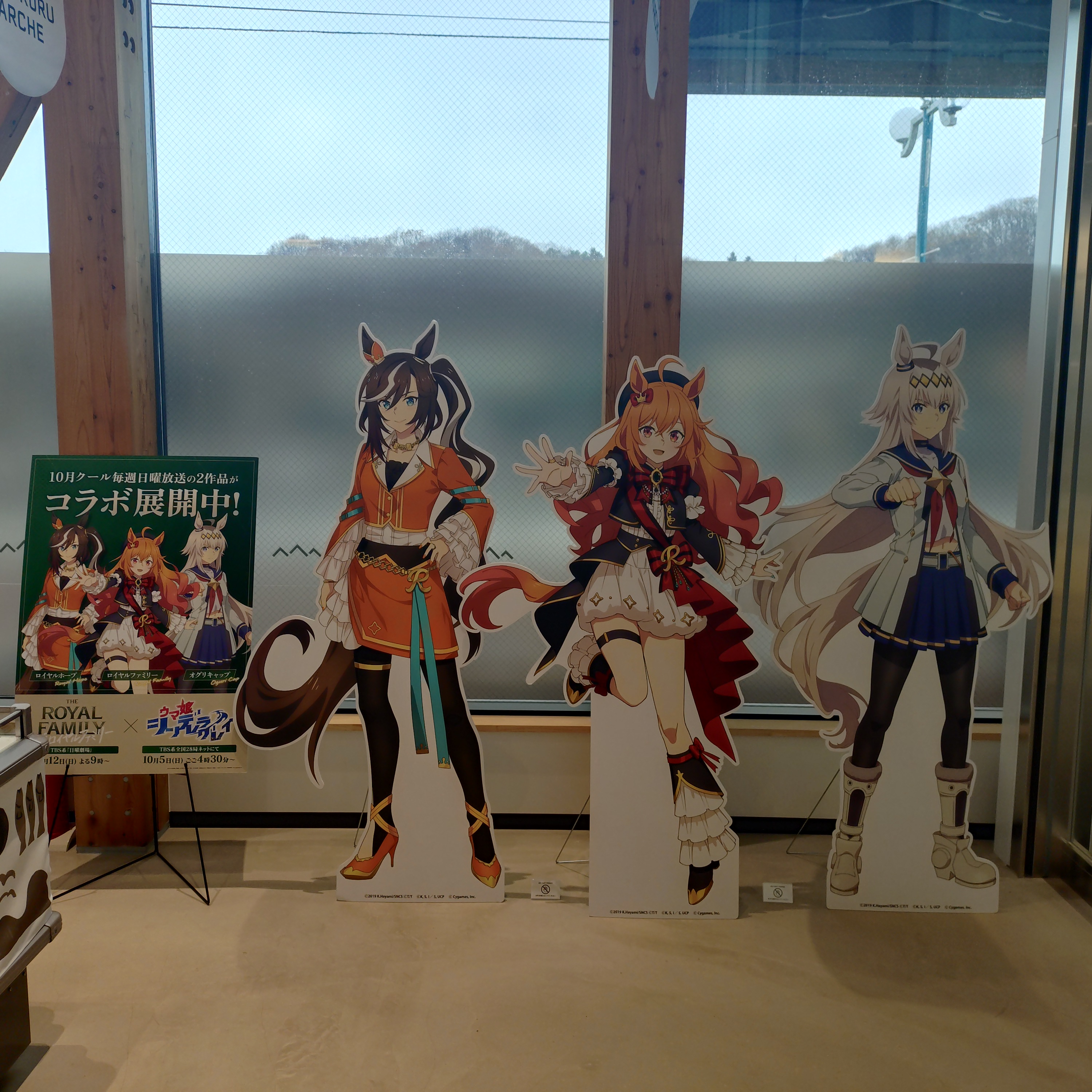 マルシェ内には、ドラマ『ザ・ロイヤルファミリー』と『ウマ娘 シンデレラグレイ』がコラボした描き下ろしイラストのキャラクターパネルが設置されています。