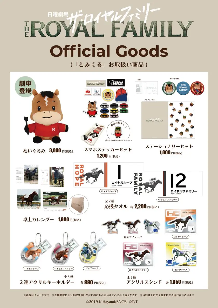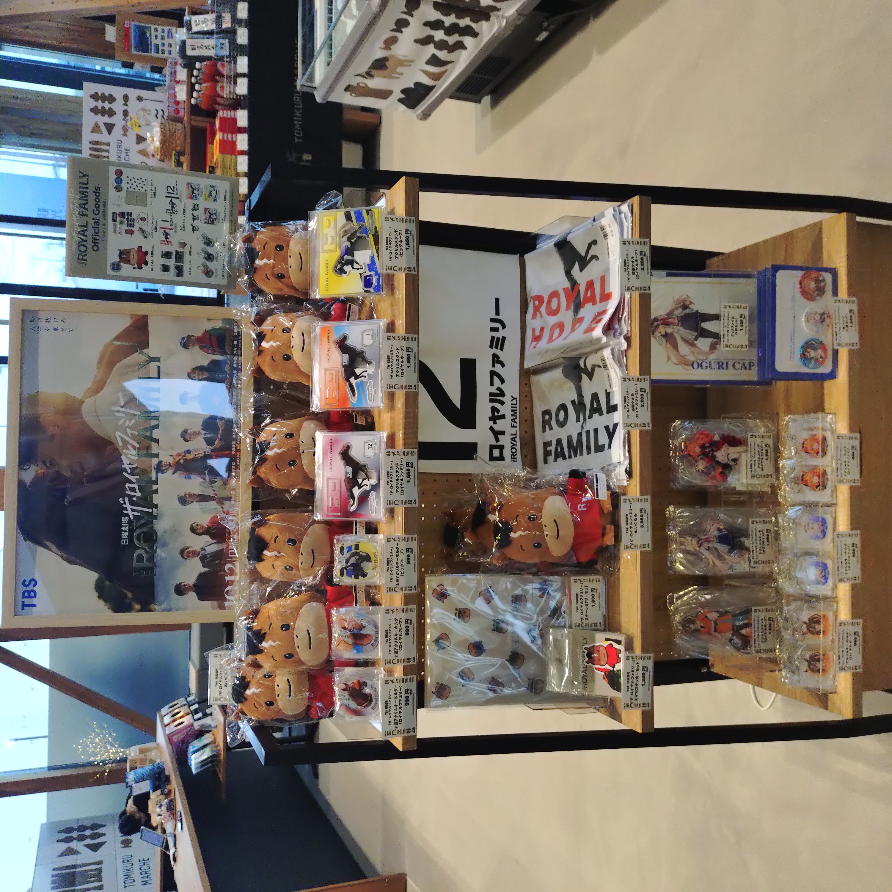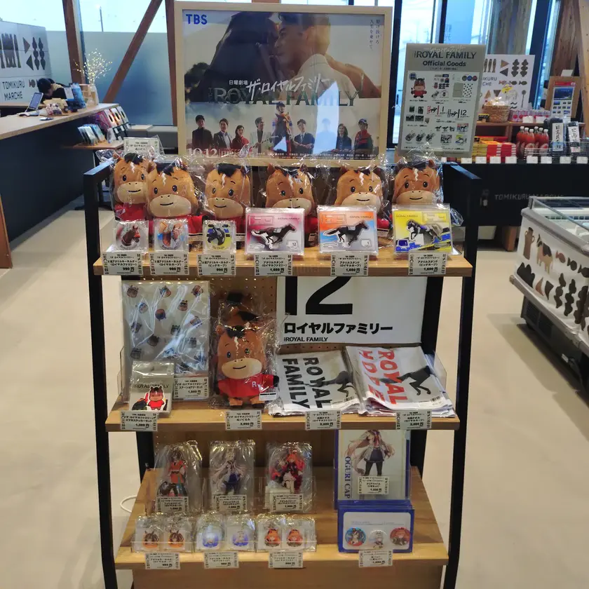 施設内の「とみくるマルシェ」では、ドラマ『ザ・ロイヤルファミリー』の番組公式オリジナルグッズが期間限定で販売されています。