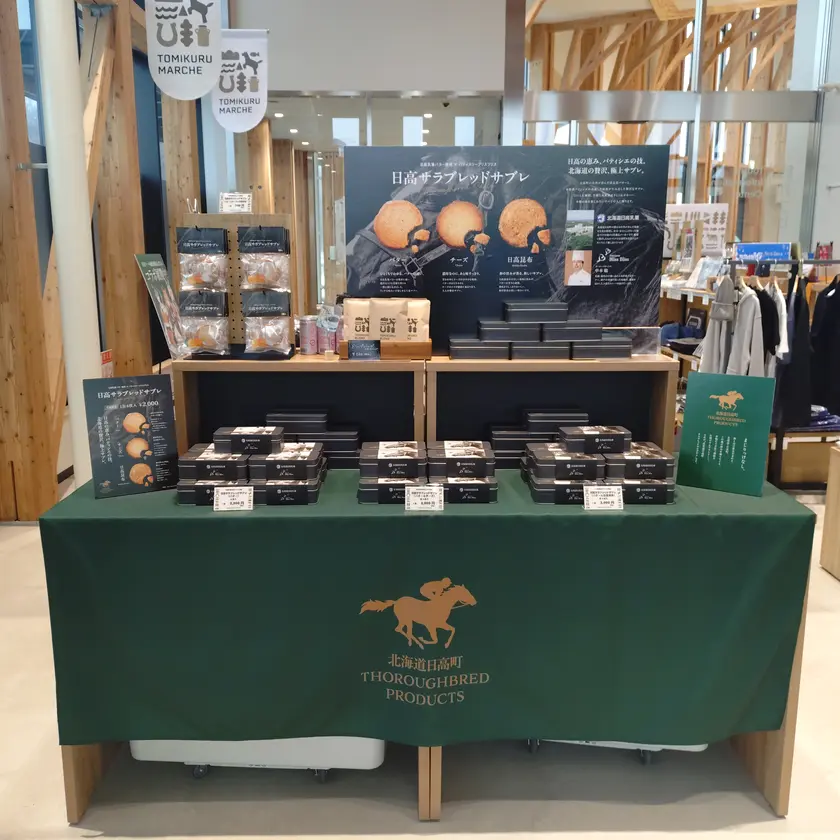 日高町の新銘菓「日高サラブレッドサブレ」日高乳業の乳製品を100%使用。競走馬の産地である日高ならではの、サラブレッドをパッケージにしたバター風味豊かなサブレです。