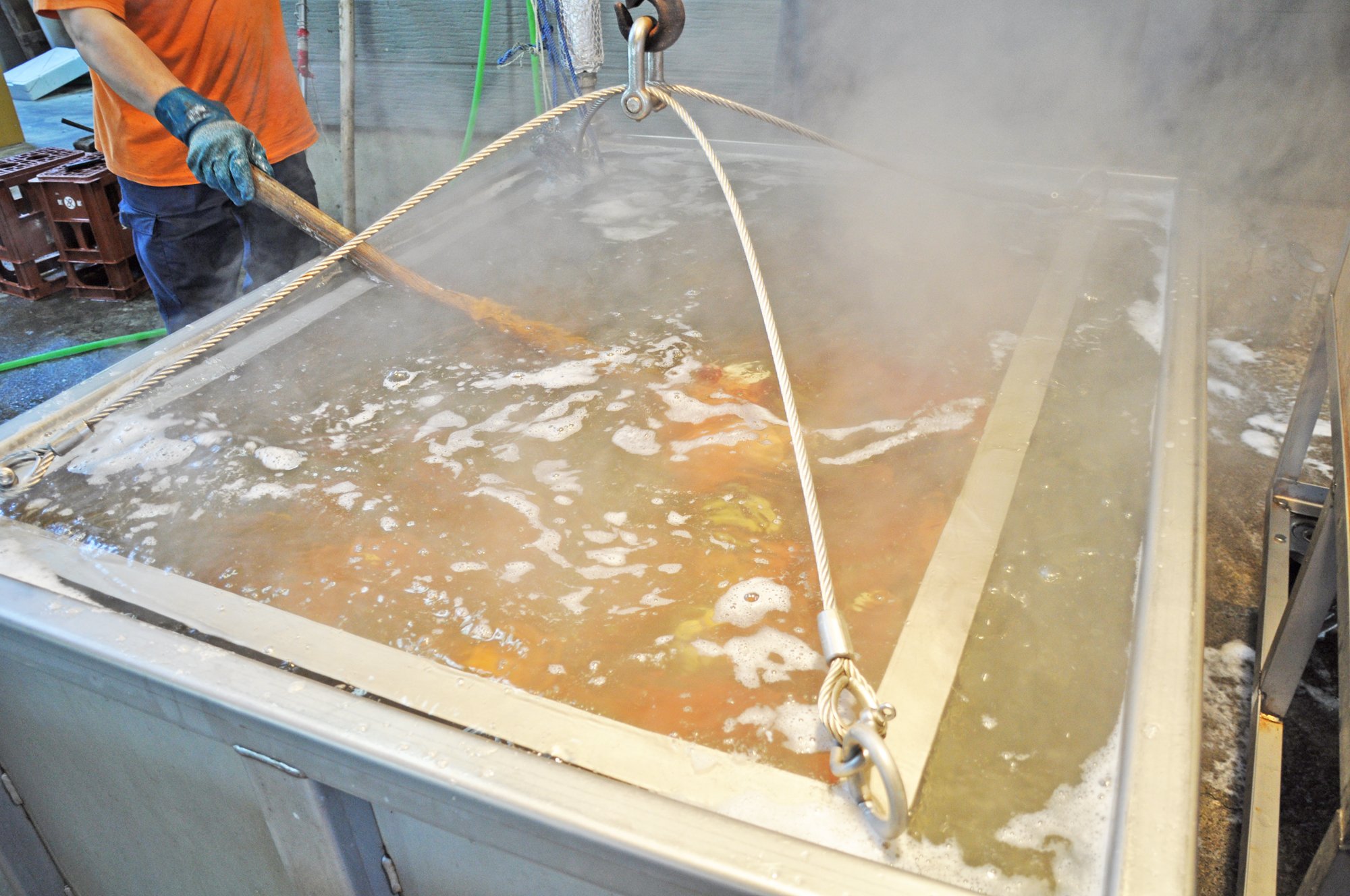 サイズの仕分けを行ったあと、煮る行程に移ります。