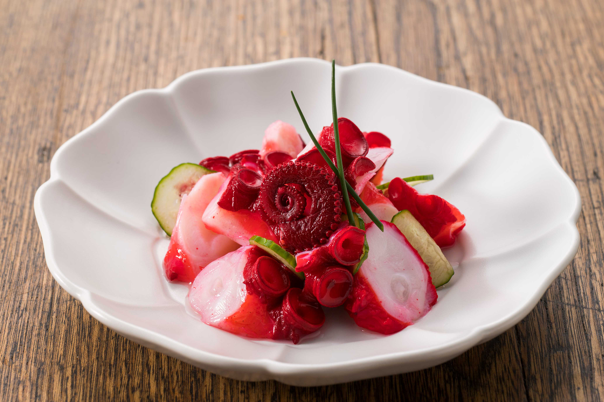 鮮やかで真っ赤な彩りと、しっかりとしたタコの歯ごたえ。噛むと甘みを感じる酢の心地よい酸味とタコの旨味。