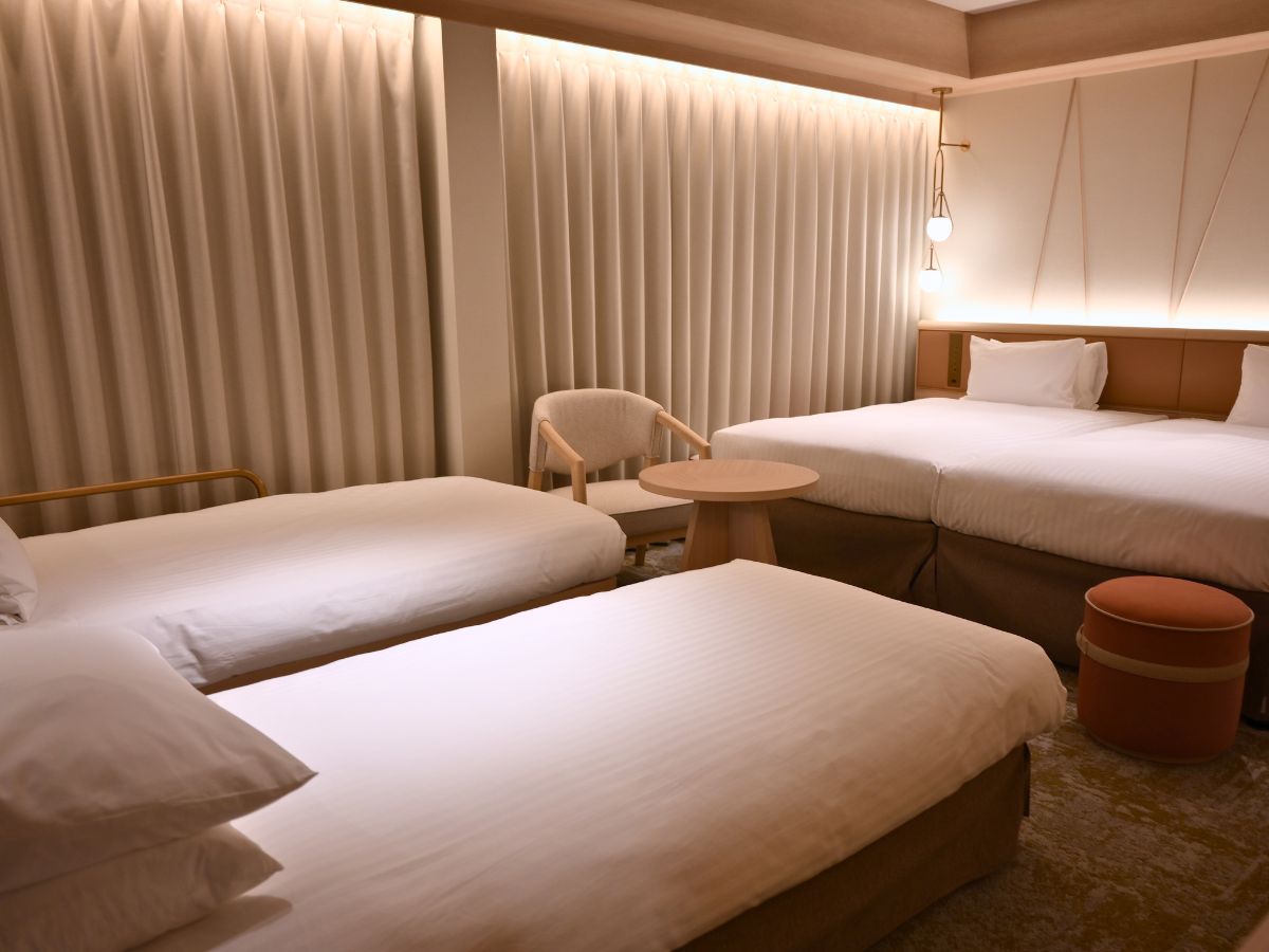 近年高まるインバウンドやファミリー、グループでの宿泊需要を受け、今回の改装では客室構成を大きく刷新。既存の客室を再編し、トリプルルームを増設するとともに、4名まで利用できるフォースルームを新設しました。これにより3~4名で泊まれる客室数は20室から140室へと大幅に増え、水回りも含めて快適性が向上しています。