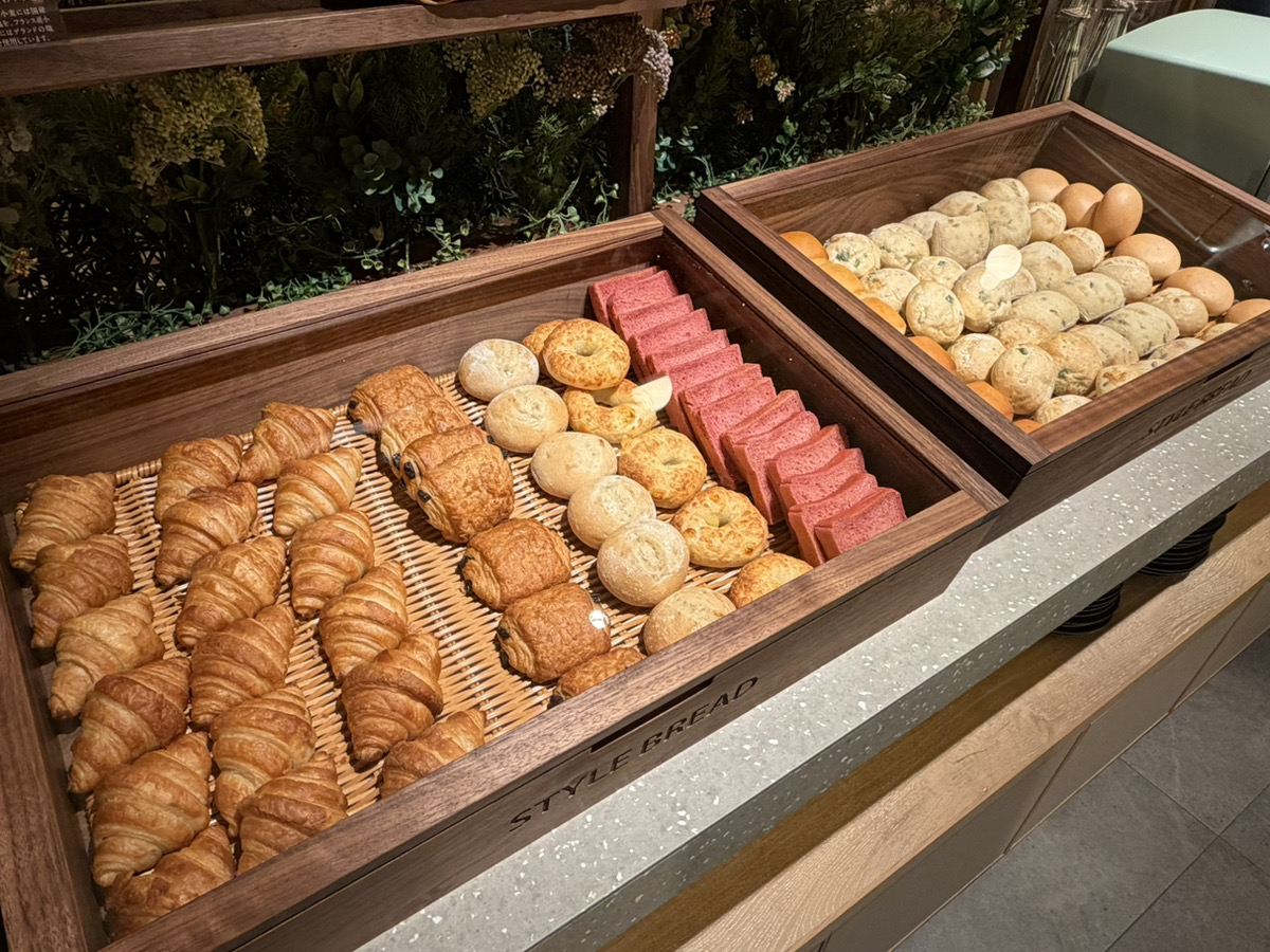 夕食時にはお腹がいっぱいで食べられなかった、パン!厳選した国産の小麦、天然酵母、塩など、こだわりの素材を使用し丁寧に焼き上げられたパンは、クロワッサンやベーグルなど種類も豊富!どれも少し小さめのサイズなので、いろんな種類が食べられるのが嬉しいです♪