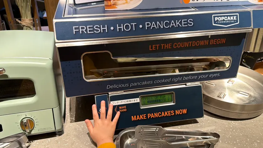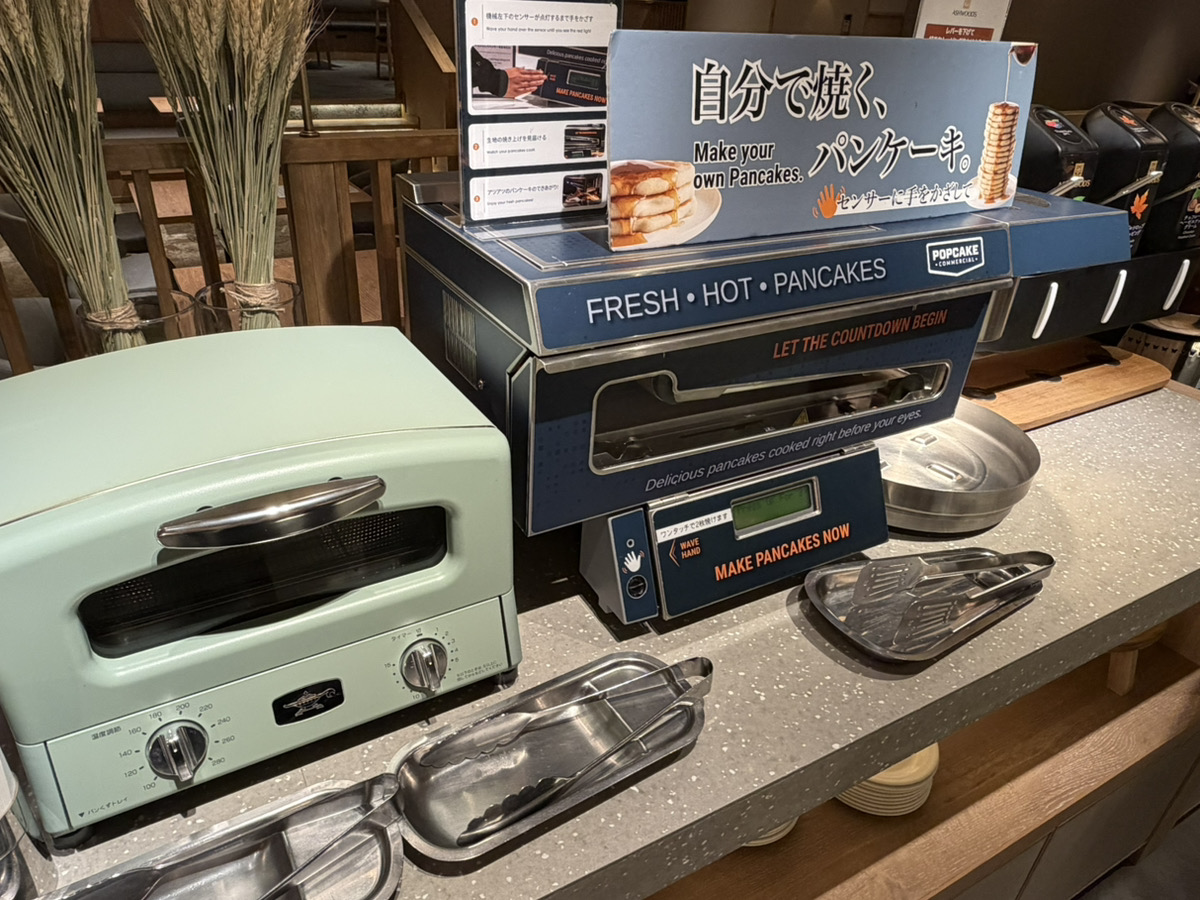 子どもが大喜びしたのが、写真右側にあるパンケーキのマシーン!