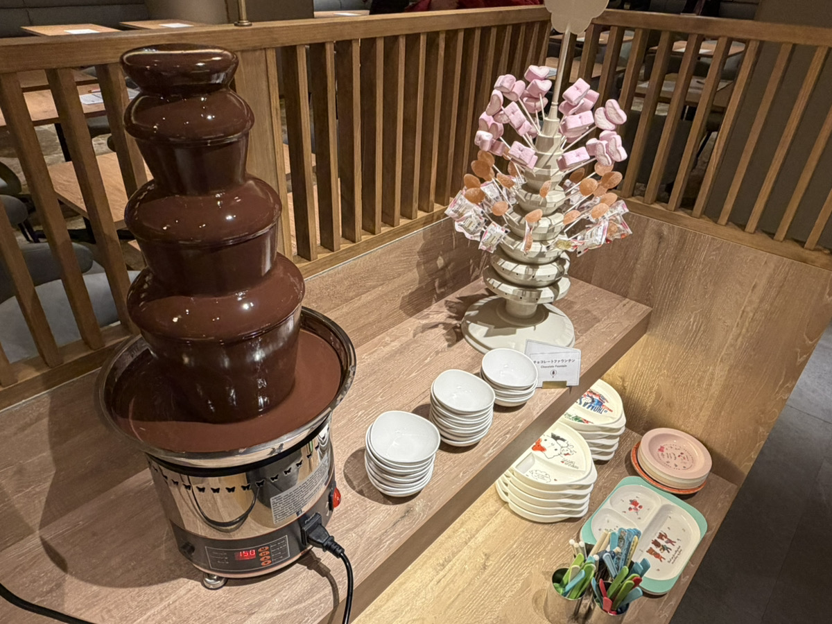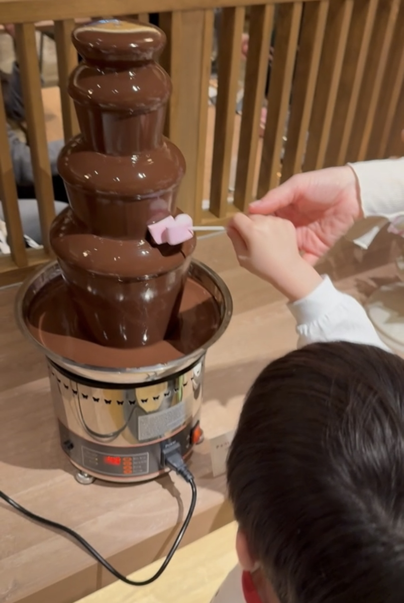 マシュマロをチョコレートにディップ!子どもが「自分でできる」メニューがあるのって、子連れにはとっても嬉しいですよね♪おかげさまで我が家の5歳児も大喜びでたくさん食べました!