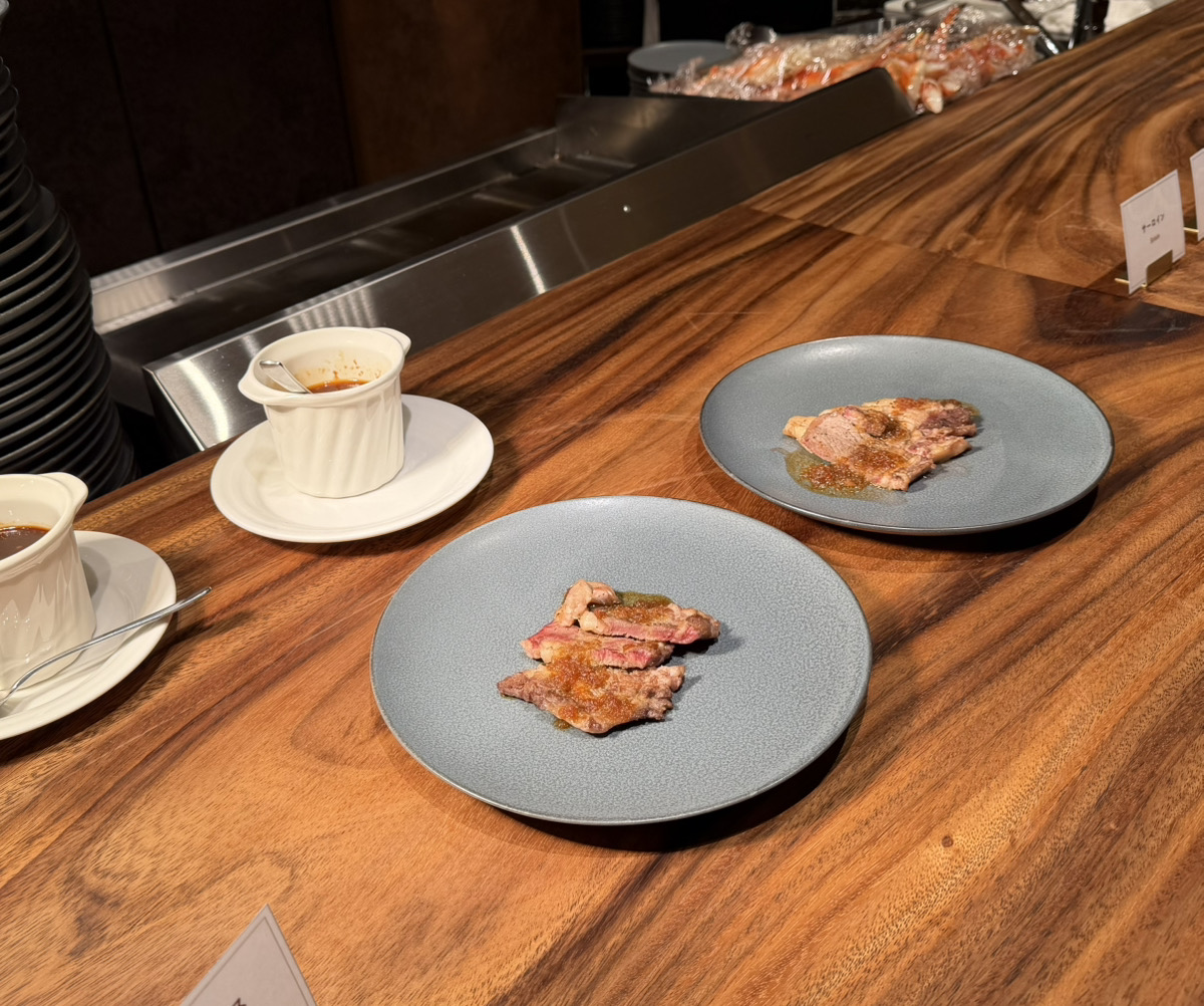 ライブキッチンでは他にも北海道産の牛モモ肉と、北海道産ブランド豚「ゆめの大地」のステーキも楽しめました。北海道産の美味しいお肉を贅沢にステーキで♪お肉好きな方にはぜひ味わっていただきたいです!