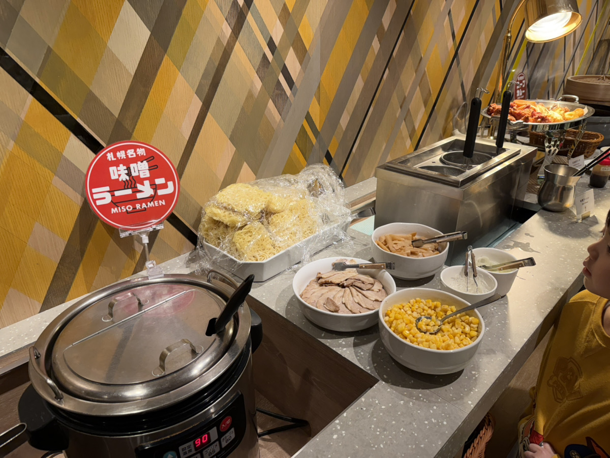 あまりにもお腹がいっぱいで残念ながら食べられなかったのですが、自分で作る味噌ラーメンのコーナーもありました!次回は“朝ラー”、したいです…!