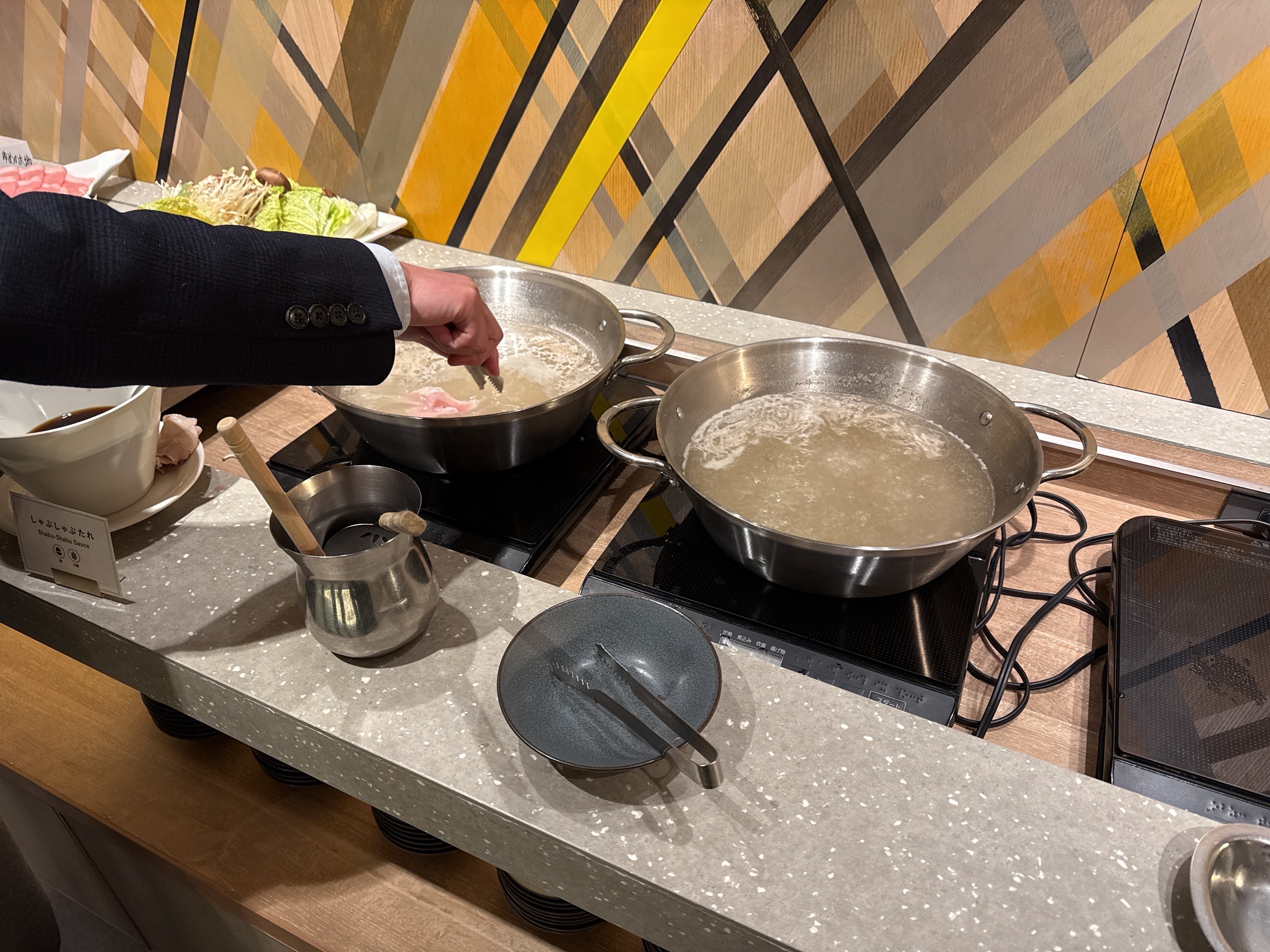 こちらはブランド豚「ゆめの大地」やラム肉を、しゃぶしゃぶで楽しめるコーナー。たっぷりの野菜と一緒に食べるしゃぶしゃぶは、ステーキとはまた違った美味しさを味わえます。