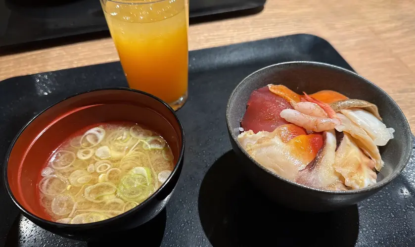 こちらは海鮮丼コーナー。好きな具材をトッピングして、自分好みの海鮮丼が作れちゃうんです。全てのお刺身をちょっとずつのせるも良し、好きな海鮮一種をどっさりのせちゃうのも良し。どんな海鮮丼を作るかはあなた次第です。