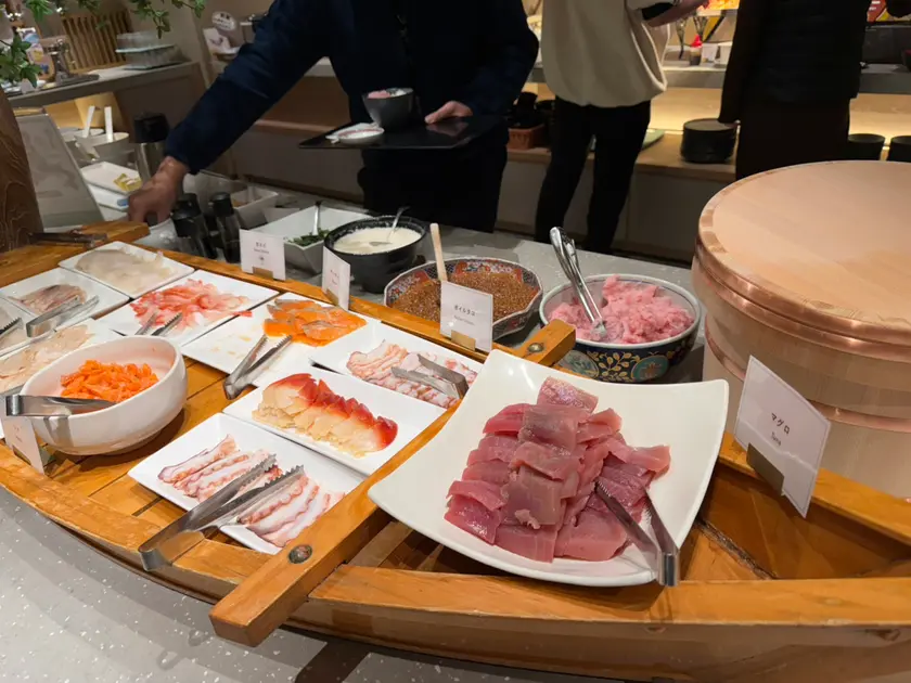 私の好みは中トロ!マグロの赤身特有の濃厚な旨味の後に、脂身の甘さが存分に味わえました。質の高い天然マグロの各部位を気軽に好きなだけ味わえるのは、ビュッフェスタイルならではの満足感。自然と気分がアガります。