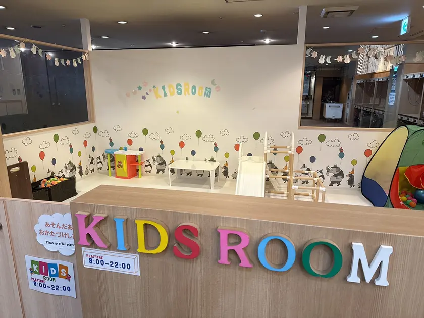ロビーには、広いキッズルームも完備。おもちゃやぬいぐるみ、絵本などもたくさん置いてあり、8:00から22:00まで自由に利用することができます。