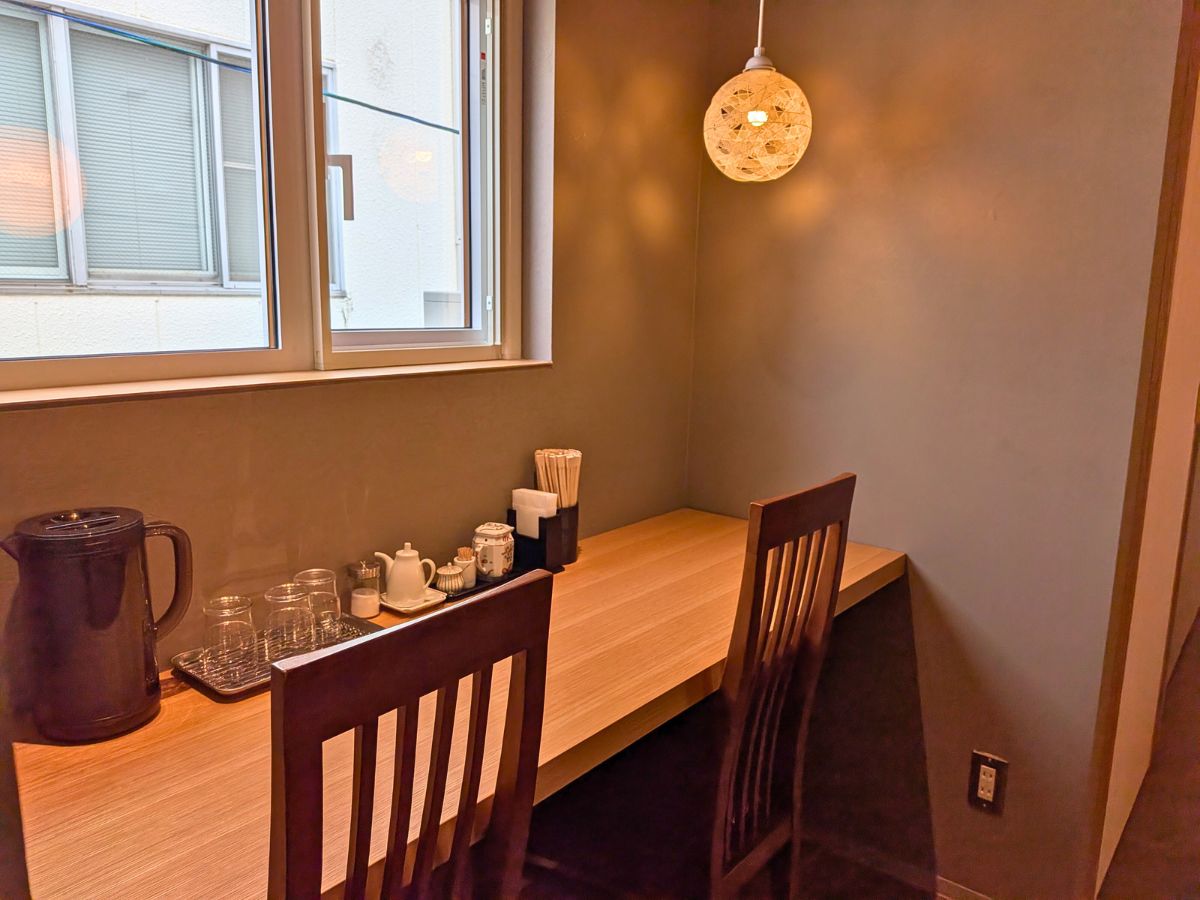 テーブルが広く、椅子同士の間隔もゆったり。相席になることもあるそうですが、窮屈さは感じにくそうです。