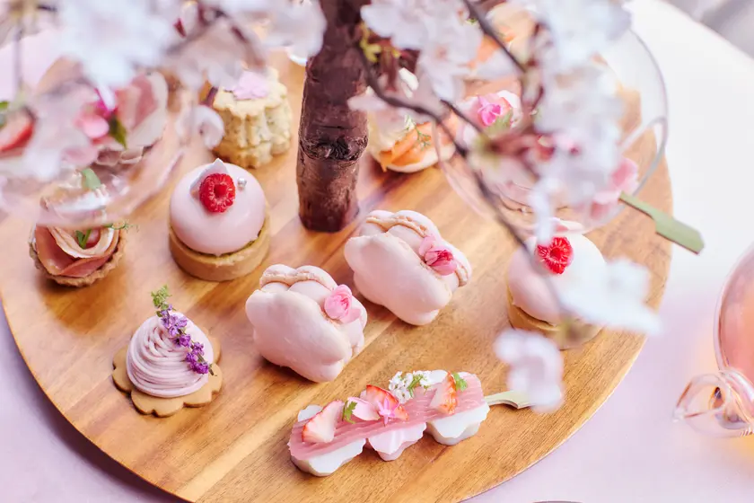 桜の木のスタンドを彩るように盛られた華やかな小菓子やセイボリーや、新登場の桜と団子のパルフェ、世界のお茶専門店「ルピシア」との共同開発による季節限定のフレーバードティー「OHANAMI」を、花咲くカーペットを眺めながら楽しめる春だけの特別メニューです。日々の忙しさや疲れを忘れさせてくれる、贅沢なひとときを過ごすことができます。