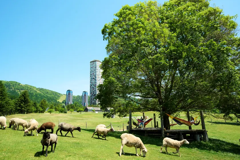 100haという広大な敷地を専用カートで巡りながら、牛や羊、馬などがのんびり暮らす空間で穏やかな時間を過ごせます。エリア内には羊に囲まれながらお休みできるハンモックスポットも。入場は無料なので、気軽に立ち寄れるのもポイントです。