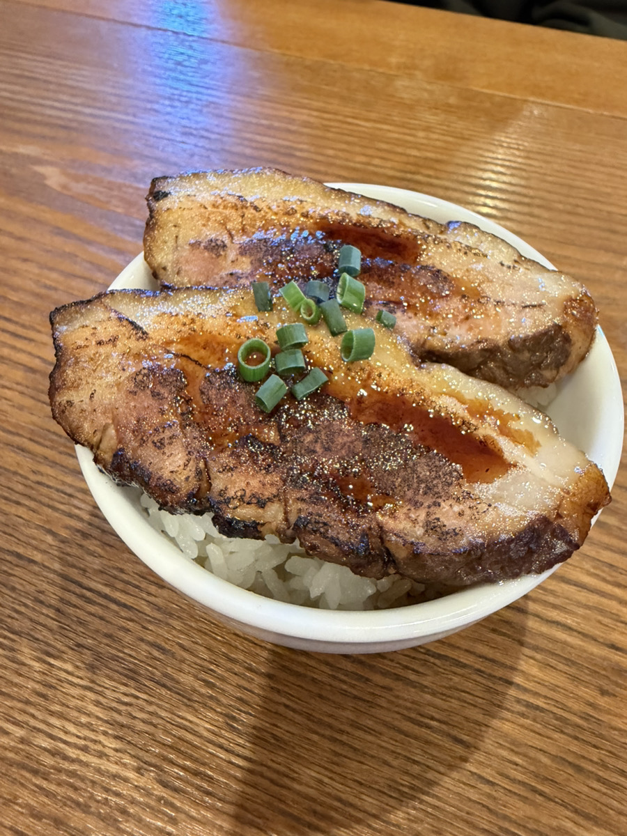 こちらは2026年3月からスタートした新メニュー「チャーシュー丼」(500円)。香ばしく炙られたチャーシューは、ラーメンで使用されている道産豚肩ロースとは異なり、道産豚バラ肉を使用。自家製の甘辛いタレと相性抜群のチャーシューは、お箸でも簡単に切れるくらい柔らか〜。ラーメンにもう一品追加したい時にピッタリです◎チャーシューが一枚の「ミニチャーシュー丼」(350円)もありましたよ。