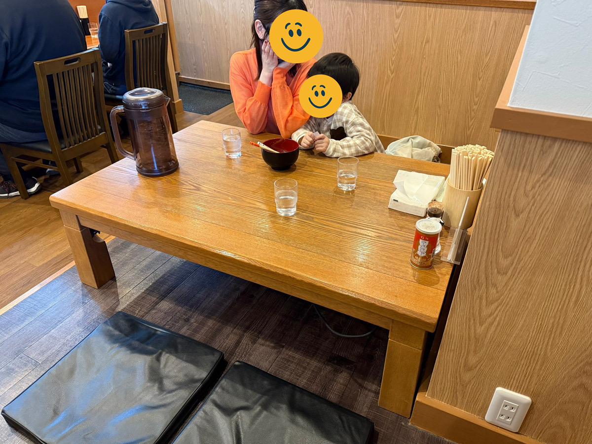 通路も広々しておりベビーカー入店もOKとのこと。小上がりで使用できる子ども用の椅子や、子ども用カトラリー(お箸&フォーク)・取り皿も完備されています。2025年11月にオープンした新しいお店なので店内はとても清潔感があり、子連れでも周りを気にせずゆっくり過ごせる雰囲気です。