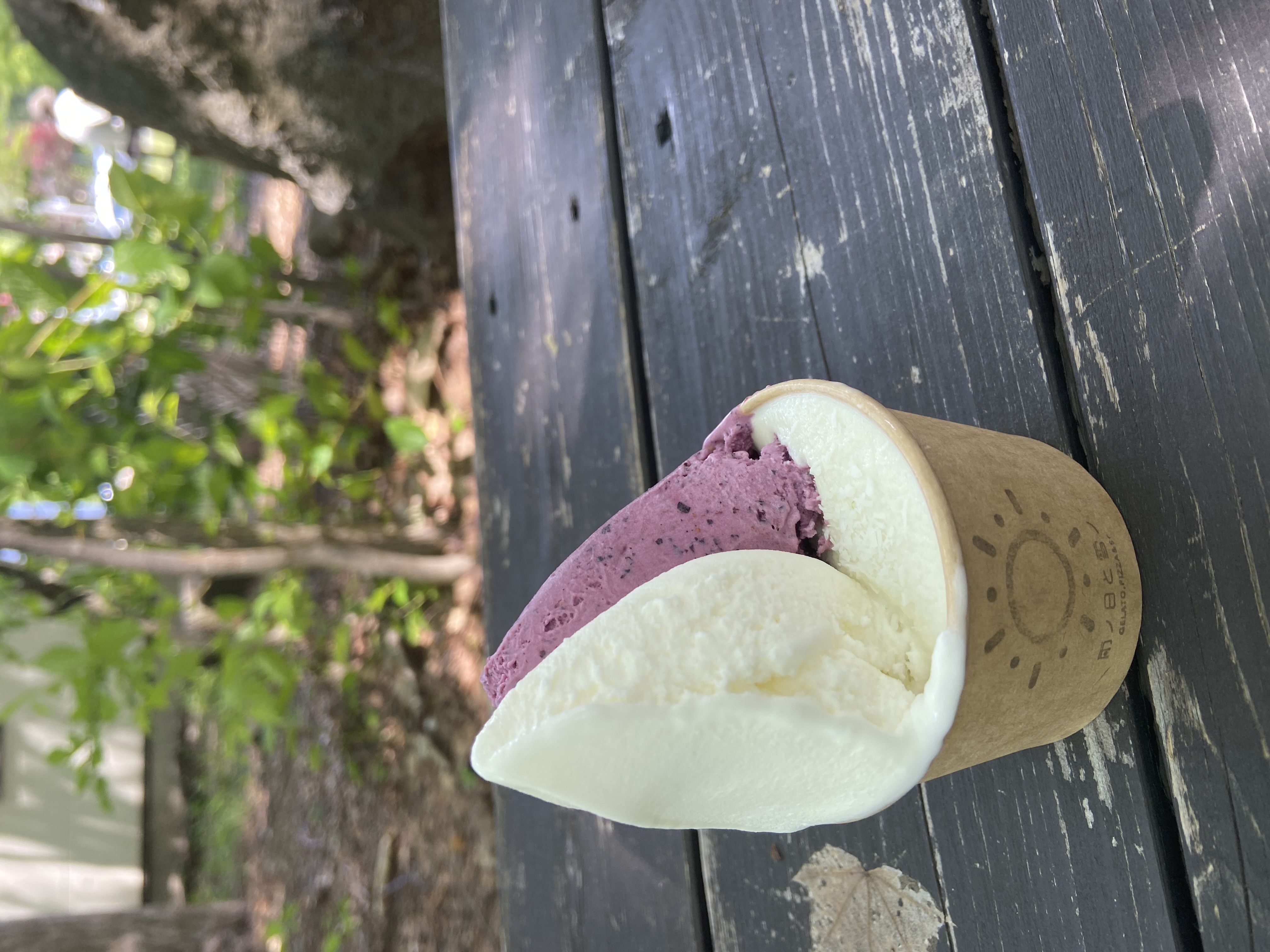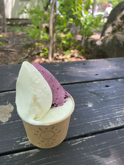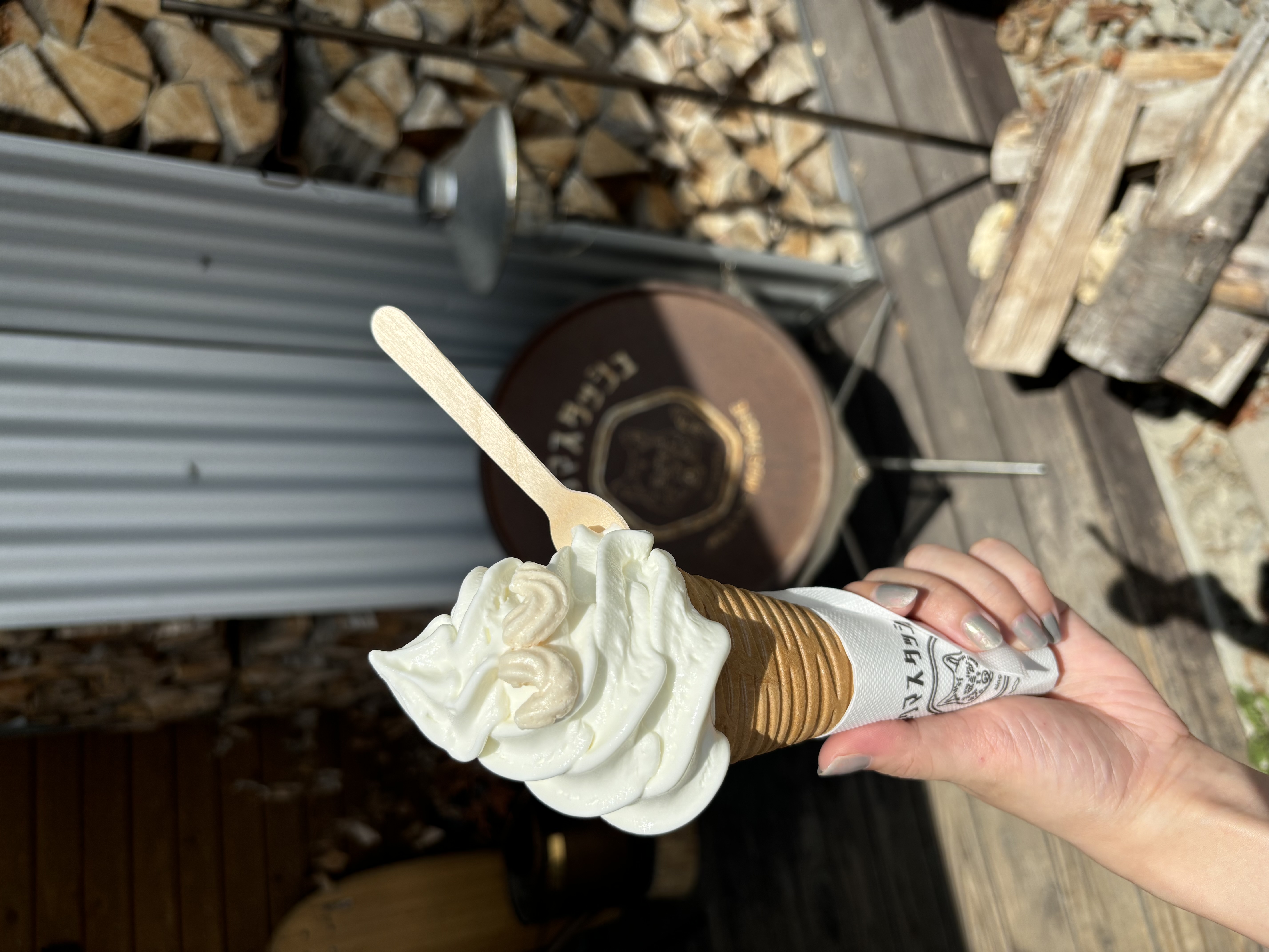 ヴェルジネ・バッカーノは石窯で焼かれたパンが有名なお店ですが、実はソフトクリームを目当てに訪れる方も多いんです。美瑛育ちのジャージー牛乳を使用したソフトクリームに、コンポートやジャム、シロップ漬けにした季節のフルーツをトッピングできます。見た目もとってもおしゃれです。