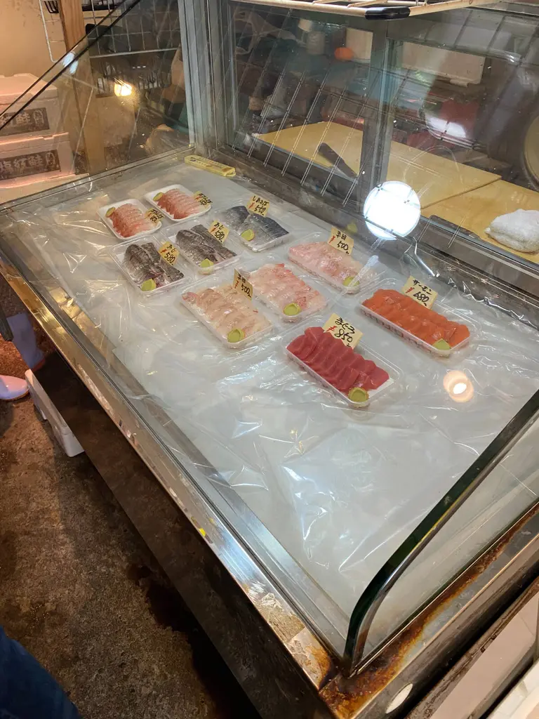 ちなみに今回のお目当てはお刺身!店奥のショーケースに並べられています。