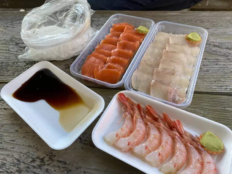 今回は、大好きなサーモン・平目・ぼたんえびを購入しました!(朝食)