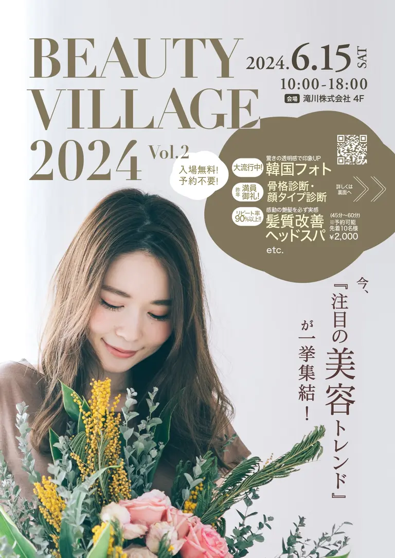 そしてこの度、第2回目となる「Beauty VILLAGE 2024~1番好きな私に出会える~」は、2024年6月15日(土)中島公園駅徒歩5分滝川株式会社様にて開催します。