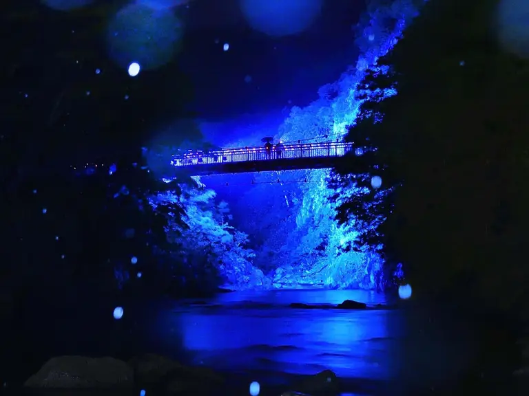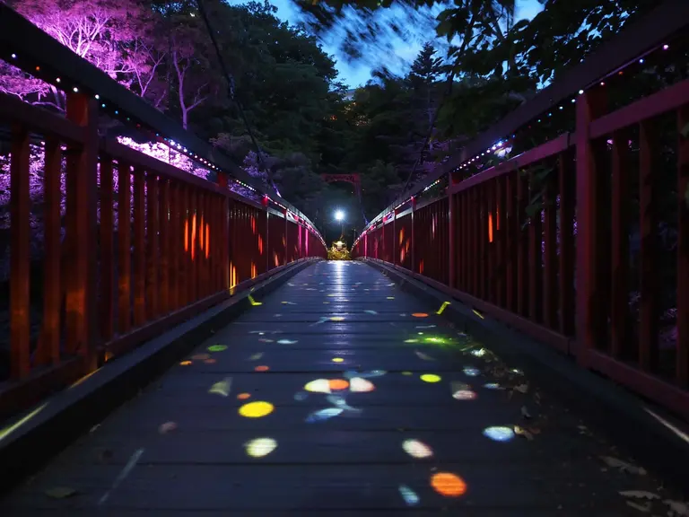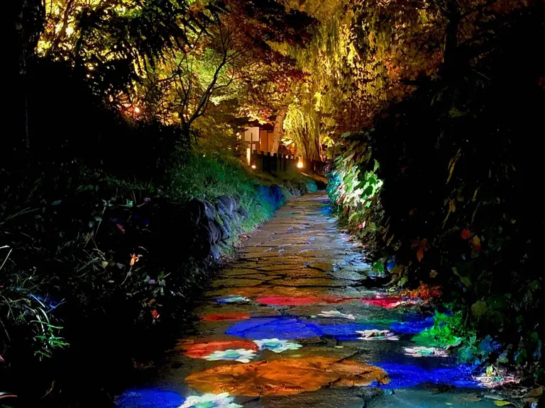 温泉街にある自然散策路を舞台にイルミネーションやプロジェクションマッピングで繰り広げられるライブパフォオーマンスがお楽しみいただけます。