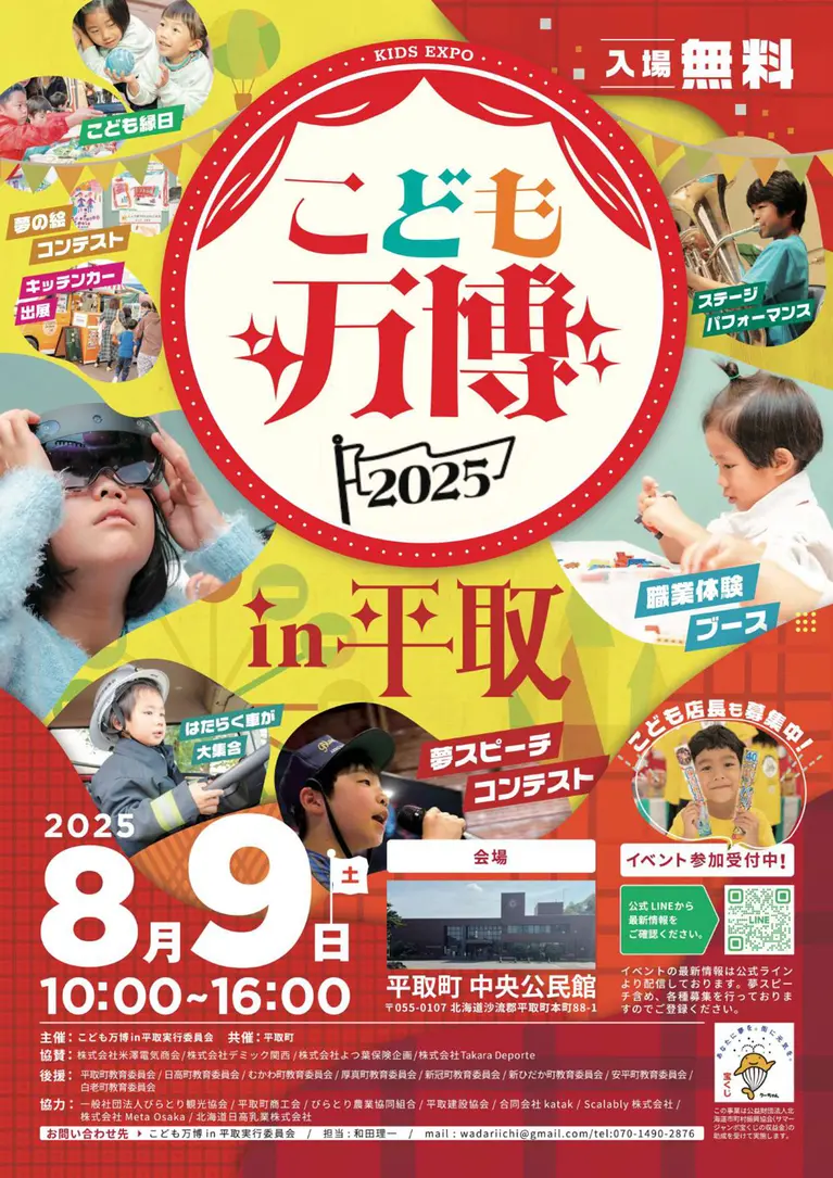 「こども万博in平取」開催決定!北海道・平取町で、こどもたちが主役になれる特別な一日。地元のお仕事体験や、はたらくクルマ、こども縁日など、楽しめるコンテンツが盛りだくさん!こどもたちの成長を感じられる、“体験”と“発見”の場。ご家族みんなで、こどもたちの“はじめて”を応援しにきませんか?