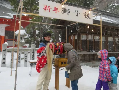 境内では、お守りやおみくじなどを受けたり、「獅子払い」で一年の無事と健康を祈ったり、露天で小腹を満たしたり、お正月らしい雰囲気が味わえます。