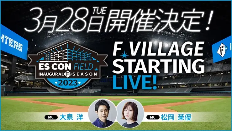 HOKKAIDO BALLPARK F VILLAGEの開業を記念して、開幕戦目前の3月28日(火)に「F VILLAGE STARTING LIVE!」を開催いたします!会場となるES CON FIELD HOKKAIDOは、プロ野球の試合だけではない新しいライブエンターテイメントの発信基地。ライブエンターテイメントを体現する360度の音楽と光の演出、世界最大級のビジョンを使った迫力ある映像の中、豪華アーティストによるライブを行います。イベントを盛り上げるMCは、北海道出身の俳優・大泉洋さん、そして松岡茉優さんが務めます。さらに、トークライブにはスペシャルゲストとしてEXITのお二人が登場して“世界がまだ見ぬボールパーク”の開業を大いに盛り上げます!