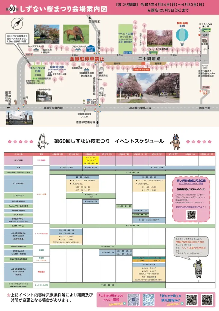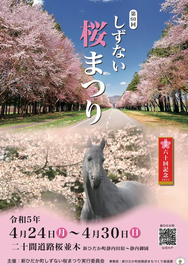 お祭・花火大会 第60回しずない桜まつり 開催日: 2023年4月24日(月) 〜 2023年4月30日(日) シェアする 開催日 2023年4月24日(月) 〜 2023年4月30日(日) 時間 9:00〜17:00 会場 新ひだか町静内二十間道路桜並木 会場住所 新ひだか町静内二十間道路桜並木(静内田原~静内御園) 主催 新ひだか町しずない桜まつり実行委員会 お問い合わせ先 新ひだか観光協会 0146-42-1000(桜まつり期間中) イベント情報の詳細はこちら イベントカレンダーへ