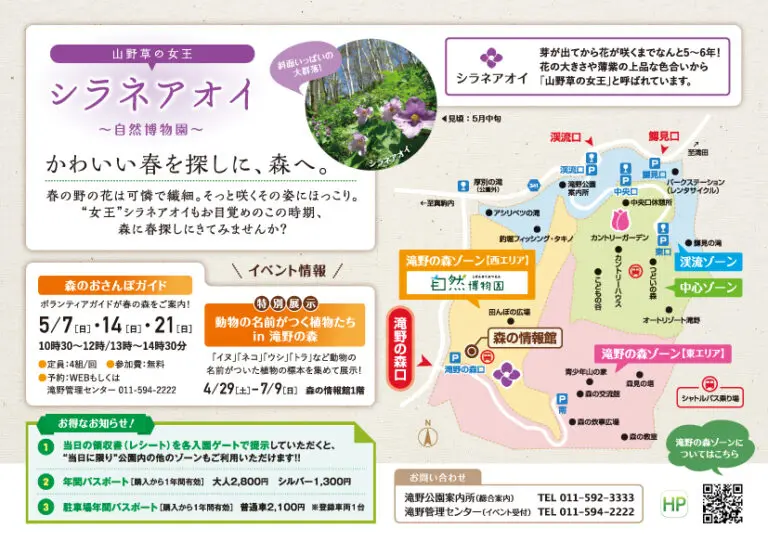 お祭・花火大会 シラネアオイと春の野の花まつり 開催日: 2023年5月7日(日) 〜 2023年5月21日(日) シェアする 開催日 2023年5月7日(日) 〜 2023年5月21日(日) 時間 9:00〜17:00 会場 国営滝野すずらん丘陵公園 滝野の森西エリア、森の情報館 会場住所 札幌市南区滝野247 料金 入園料:大人(15歳以上)450円、シルバー(65歳以上)210円 お問い合わせ先 011-592-3333(滝野公園案内所) イベント情報の詳細はこちら イベントカレンダーへ