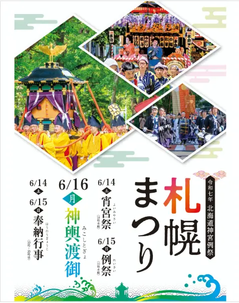 お祭・花火大会 北海道神宮例祭札幌まつり 開催日: 2025年6月14日(土) 〜 2025年6月16日(月) シェアする 開催日 2025年6月14日(土) 〜 2025年6月16日(月) 時間 10:00〜20:00 会場 北海道神宮 会場住所 札幌市中央区宮ヶ丘474 イベント情報の詳細はこちら イベントカレンダーへ