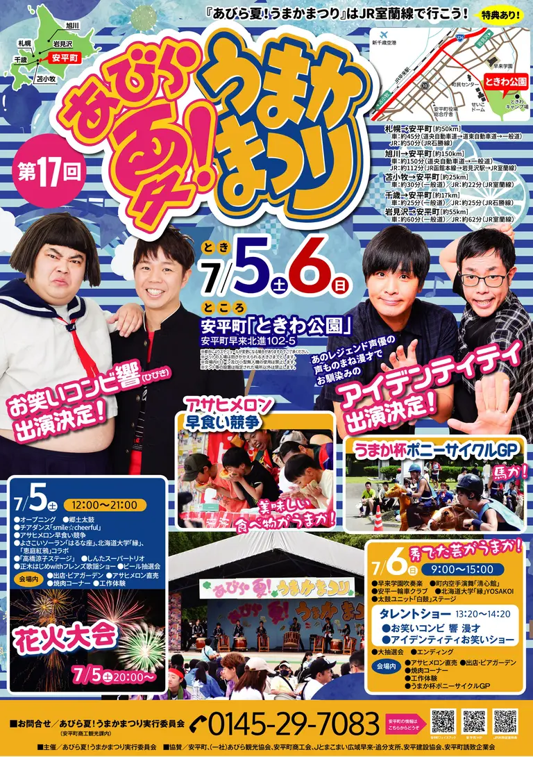 美味(うま)い物・巧(うま)い芸能・馬(うま)産地、3つの“うま”を融合した、安平町の特産がぎゅっと詰まったおまつりです。