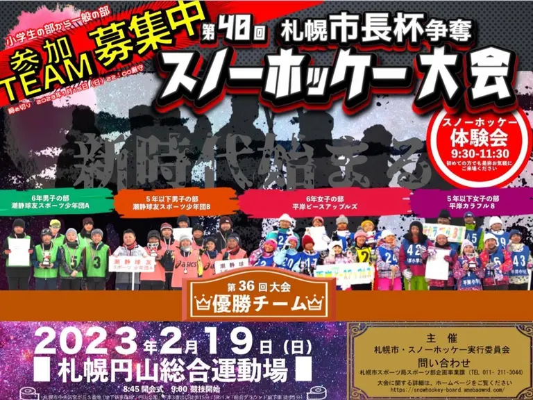スポーツ 第40回札幌市長杯争奪スノーホッケー大会 開催日: 2023年2月19日(日) シェアする 開催日 2023年2月19日(日) 時間 8:45 開会式 9:00 競技開始 会場 札幌円山総合運動場 会場住所 札幌市中央区宮ヶ丘3 イベントカレンダーへ