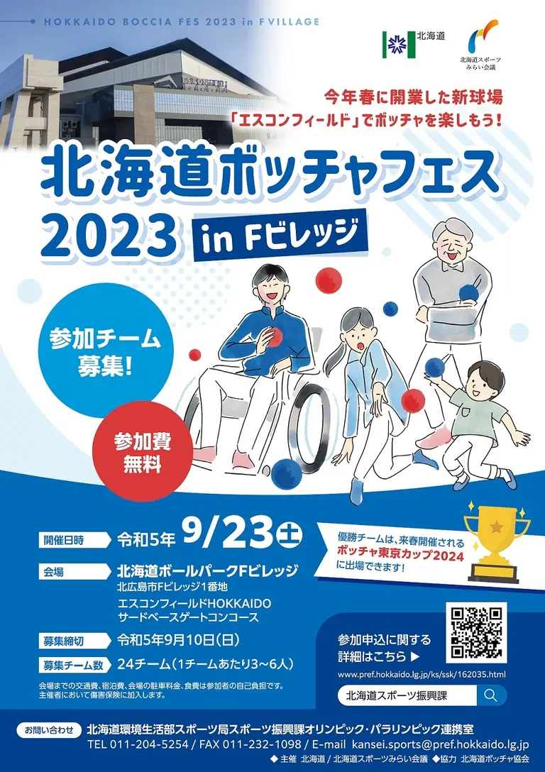 スポーツ 北海道ボッチャフェス2023 inFビレッジ 開催日: 2023年9月23日(土) シェアする 開催日 2023年9月23日(土) 時間 10:30〜開会式 11:00〜予選リーグ 14:00〜決勝トーナメント 15:30〜閉会式 会場 北海道ボールパークFビレッジ エスコンフィールドHOKKAIDO サードベースゲートコンコース 会場住所 北広島市Fビレッジ1番地 イベント情報の詳細はこちら イベントカレンダーへ