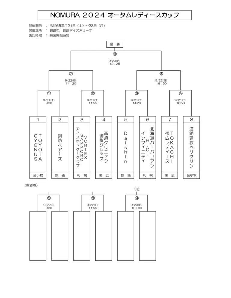スポーツ 【女子アイスホッケー】NOMURA 2024 オータムレディースカップ 開催日: 2024年9月21日(土) 〜 2024年9月23日(月) シェアする 開催日 2024年9月21日(土) 〜 2024年9月23日(月) 時間 日にちによって変動があるため、トーナメント表をご確認ください 会場 釧路アイスアリーナ 料金 無料 イベントカレンダーへ