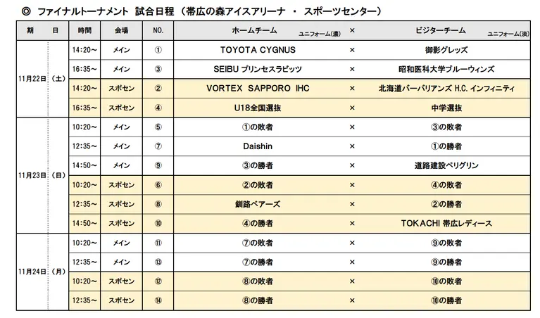 スポーツ 【女子アイスホッケー】第14回女子日本アイスホッケーリーグ(ファイナル) 開催日: 2025年11月22日(土) 〜 2025年11月24日(月) シェアする 開催日 2025年11月22日(土) 〜 2025年11月24日(月) 時間 10:00〜 会場 帯広の森アイスアリーナ、帯広の森スポーツセンター 料金 無料 主催 (公財)日本アイスホッケー連盟 イベント情報の詳細はこちら イベントカレンダーへ