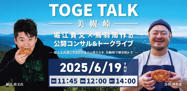 今回のイベントでは「地方を武器にするビジネスの作り方」をテーマに、堀江と鳥羽シェフによる対談・公開コンサルを実施。両氏がタッグを組んで展開するプロジェクトについても紹介予定です。普段は聞くことのできない、実践的な経営アドバイスを直接体感できる貴重な機会となっております。地域経営に携わる方々をはじめ、地方創生や起業に関心のある方のご参加をお待ちしております。