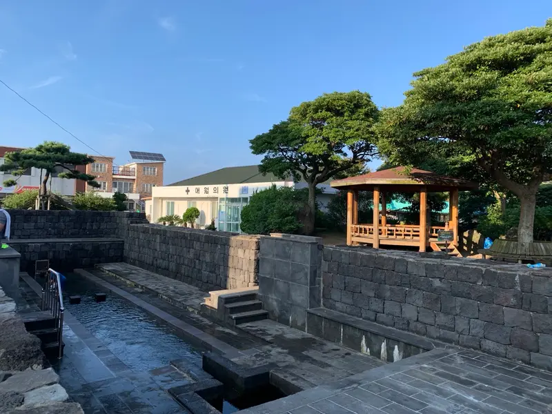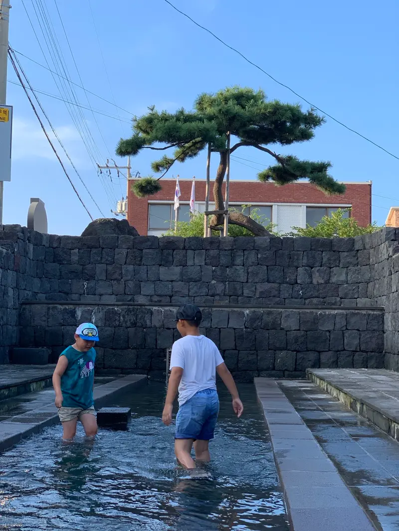 昔は済州の海女さんだけでなく、村の野外男湯・女湯としても使われていたところですが、今は夏になると涼しい水遊び場になっているところでもあります。