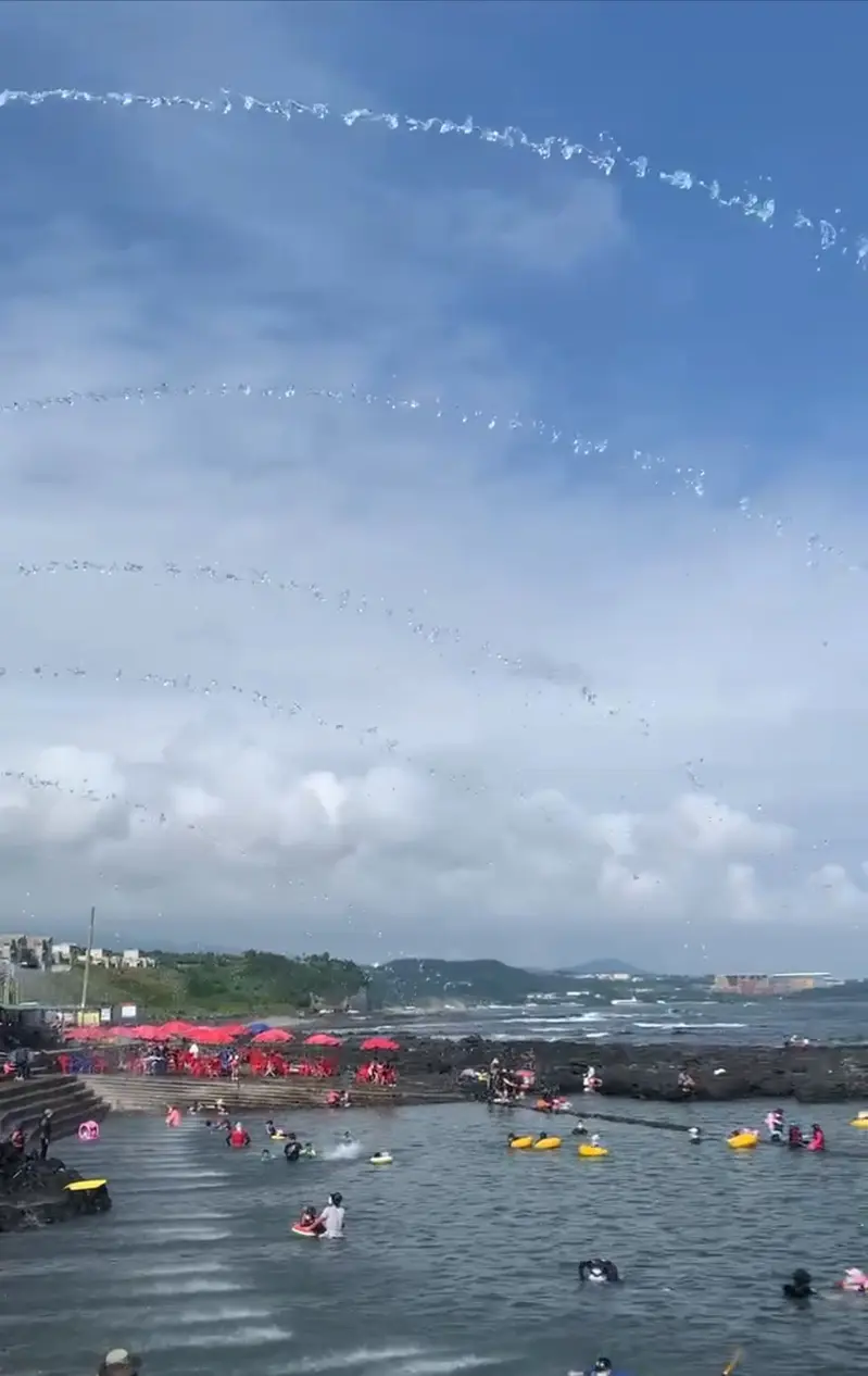 ここには特に子供たちと一緒に水遊びを楽しみに来る家族連れが多いのですが、海と合流する部分に石垣が積まれていて、真ん中には顎が一つあり、海水浴場より安全に水遊びを楽しむことができるからです。