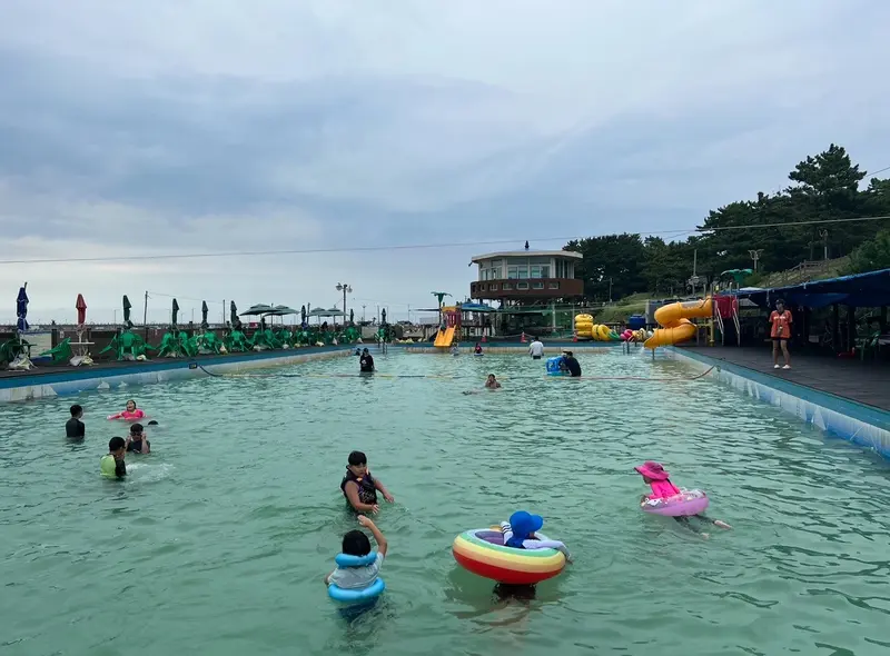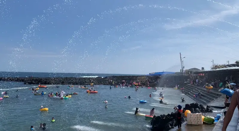 소금기 있는 바람과 파도치는 해수욕보다 한라산에서부터 내려오는 시원한 용천수(땅에서 솟아 나오는 물) 또는 바다물의 해수를 정화시켜 염분이 없는 담수 풀장 물놀이가 더 시원할거에요.