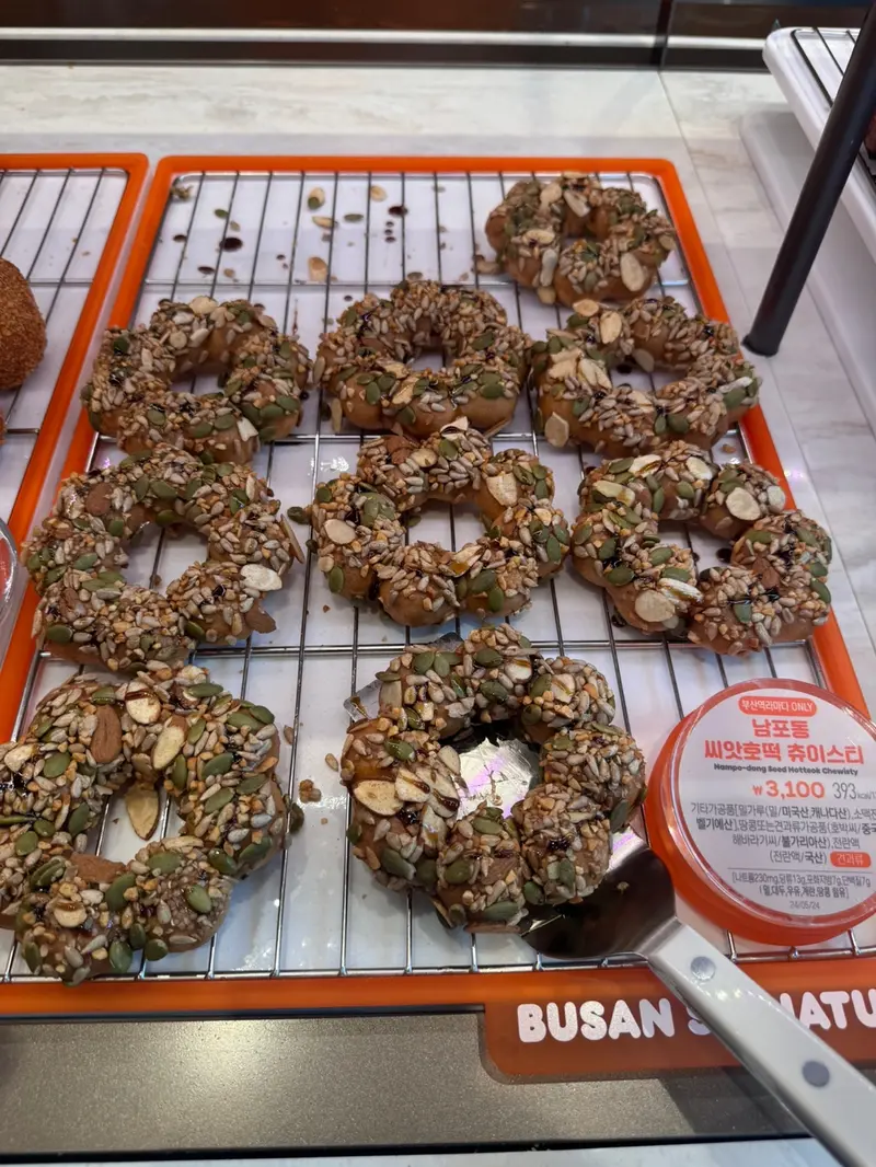 広安里(カンアンリ)をイメージした塩ミルククリームドーナツ、南浦洞(ナンポドン)をイメージしたナッツドーナツ、釜山おでんの老舗サムジンオムクのえび揚げドーナツと唐辛子ドーナツの全4種類が今年(2024年)に発売されました。