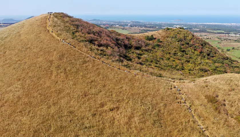 ススキ畑の間を通る道を歩きながら、オルムから済州平野と海まで眺めることができるので、秋の旅行者にぜひおすすめしたい場所です。