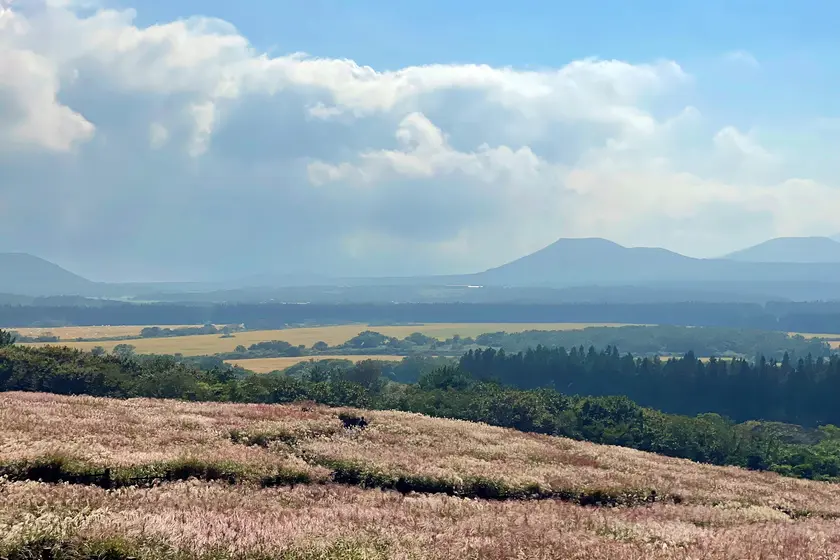 広大なクレーターと一緒に銀色のススキが舞う姿は圧巻です。