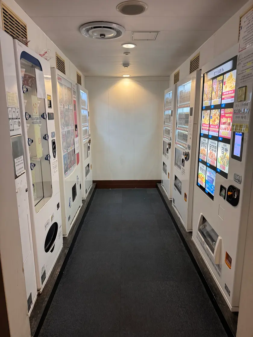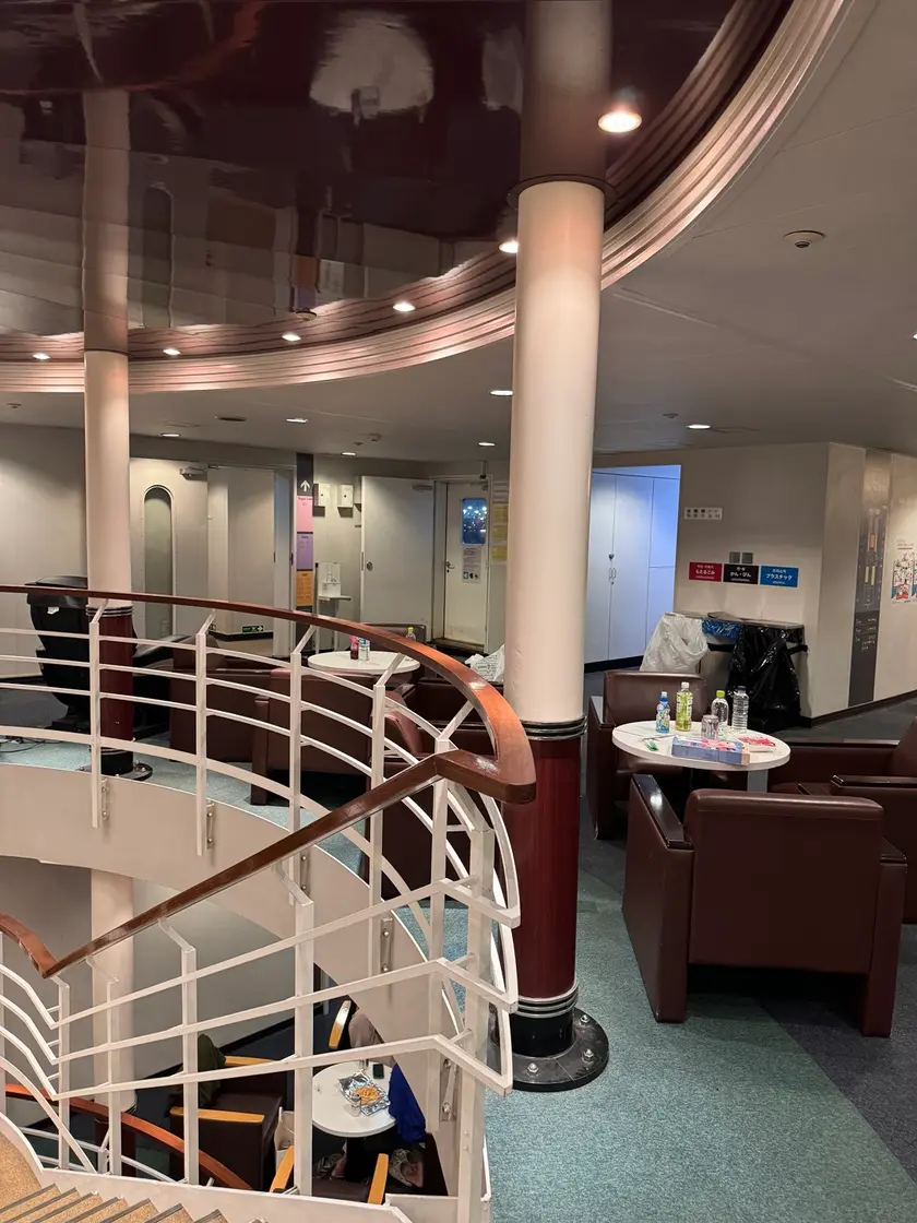 船内は広く、自動販売機や売店、大浴場やカラオケも完備されています。
