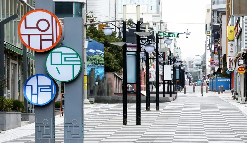 済州国際空港からバスで20分の距離にある「ヌウェマル(누웨마루)通り」は、様々なお店やグルメ店が並ぶ歩行者天国です。