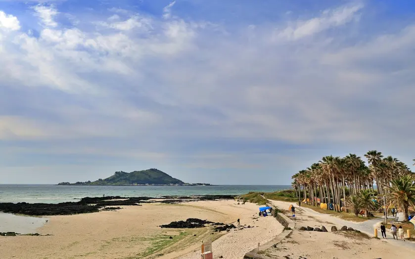 ジミンがSNSにアップした一枚の写真だけでもファンの心をときめかせる協和(ヒョプジェ:협재해)海水浴場は、エメラルド色の海と銀色の砂、そして小さな島が調和した絵のような風景を誇ります。