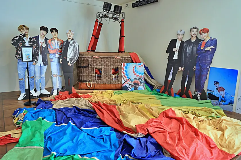 カフェ内部には、実際に撮影に使われた熱気球をはじめ、メンバーが食事をしたテーブルやサイン、写真、アルバム、グッズなどが展示されており、ファンにカフェ以上の感動を与えてくれます。