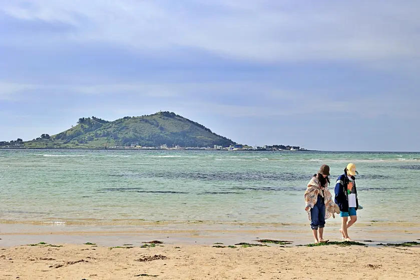 지민이 SNS에 올린 한 장의 사진만으로도 아미들의 마음을 설레게 하는 협재해수욕장은 에메랄드빛 바다와 은빛 모래 그리고 작은 섬이 어우러져 그림 같은 풍경을 자랑한다. 바로 앞 작은 섬은 제주에서 가장 나중에 생긴 비양도다. 비양도 옆 바다로 떨어지는 석양은 협재해수욕장에서 놓칠 수 없는 또 하나의 장관이다.
