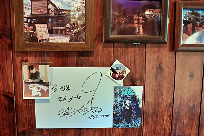 入り口にはジミンが残したサインをはじめ、ここを訪れた芸能人たちの認証写真が飾られています。
